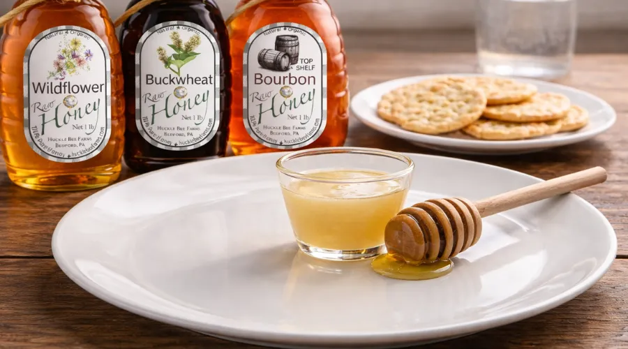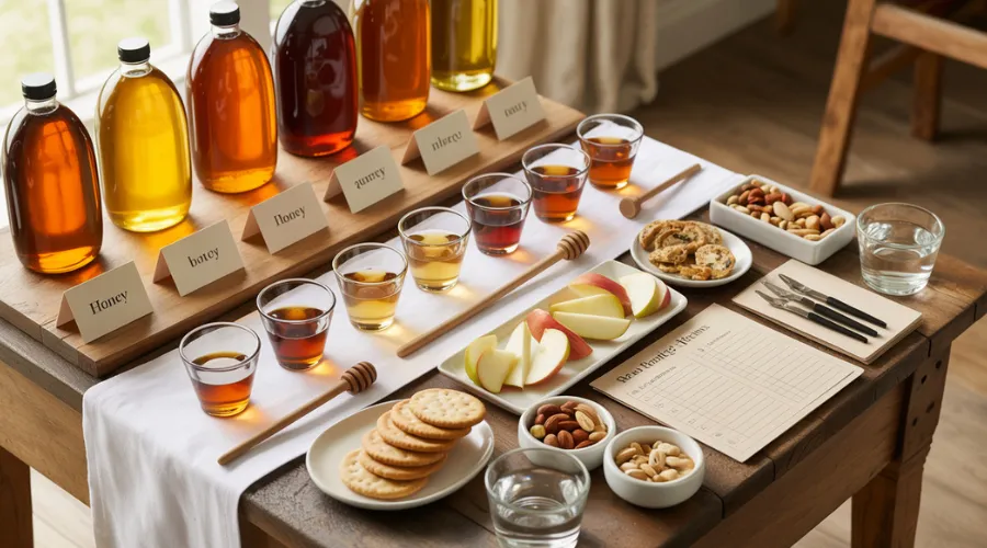 A five-honey lineup, perhaps featuring an orange blossom varietal, or even a wildflower vs buckwheat honey tasting, is long enough to feel special, short enough to keep palates fresh. Include bourbon honey tasting ideas by arranging the tasting from mildest to boldest so the darker, heavier honeys, including bourbon-infused options, do not drown out the lighter ones.